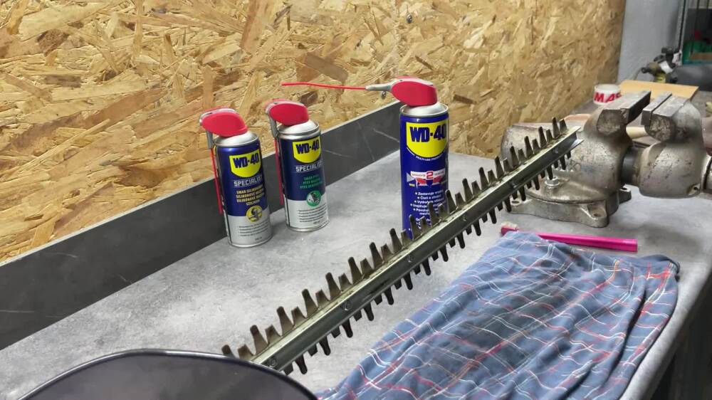 Pravidelná údržba nožníc na živý plot, očistenie a premazanie.