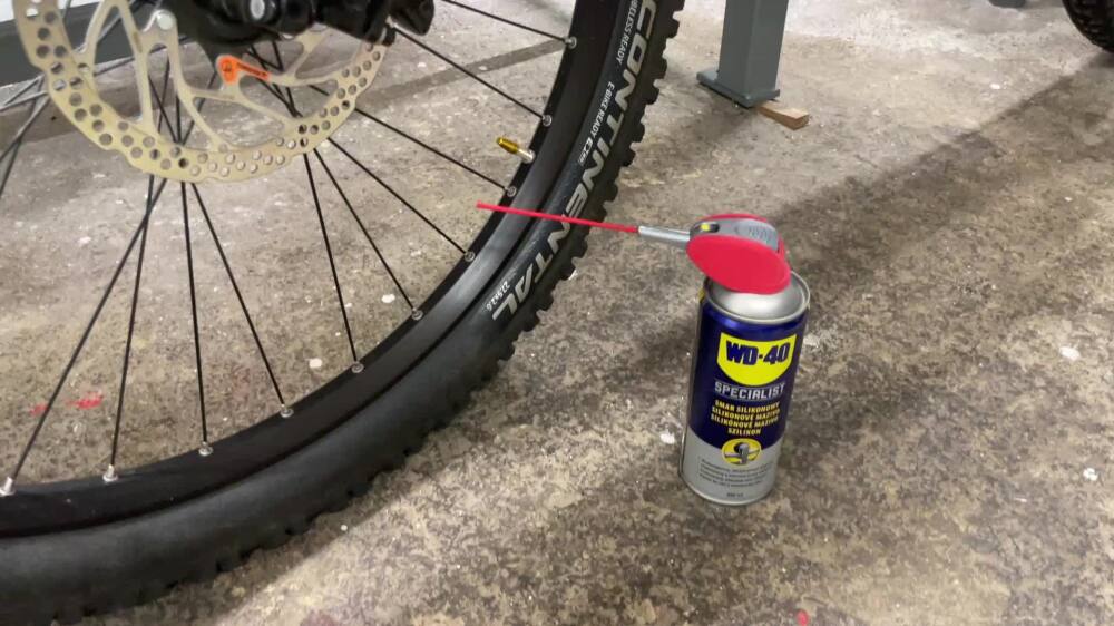Ochrana a premazanie odpruženia bicykla pomocov WD-40 Specialist-Silikón.