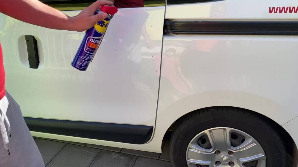 WD40 ako výborný pomocník na premazanie posuvných dverí v aute.